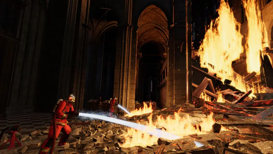 VR ESCAPE ROOM SAVE NOTRE-DAME ON FIRE – це квест у  віртуальній реальності, яка базується на історичному порятунку Нотр-Дам де Париж під час пожежі, яка майже знищила собор 15 квітня 2019 року. Ця гра  заснована на фільмі « Нотр-Дам у вогні” Жана-Жак Анно і прагне віддати пошану Паризькій пожежній бригаді, яка допомогла зробити гру максимально реалістичною та справжньою.